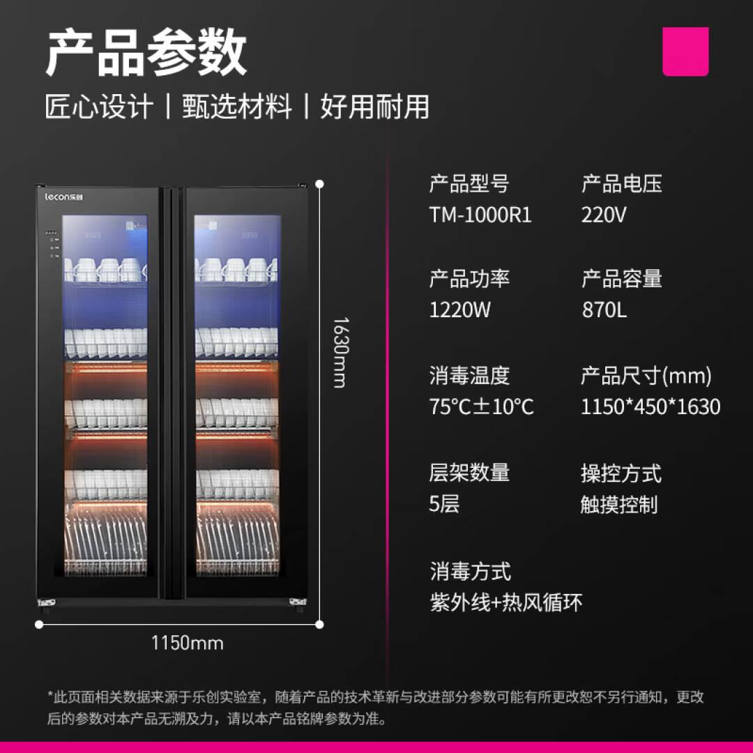乐创(lecon)商用消毒柜紫外线消毒双开门立式消毒碗柜碗筷消毒柜餐饮食堂触屏款TM-1000R1