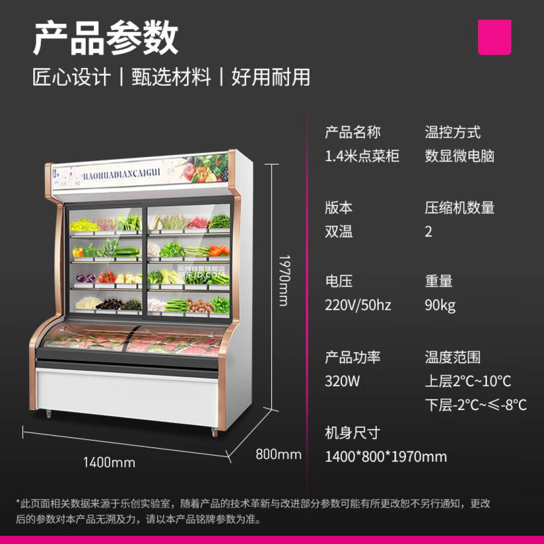 乐创(lecon)点菜柜展示柜烧烤冰箱保鲜柜商用冷藏柜蔬菜水果麻辣烫柜冷藏冷冻双温陈列柜LC-DCG1.4