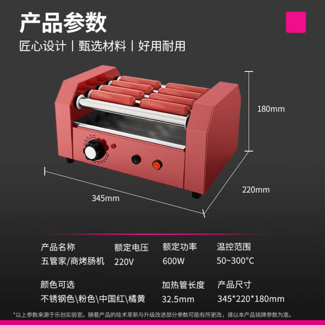 乐创(lecon)烤肠机商用热狗机家用小吃店全自动台式烤火腿肠机5管(红色)LC-5-H