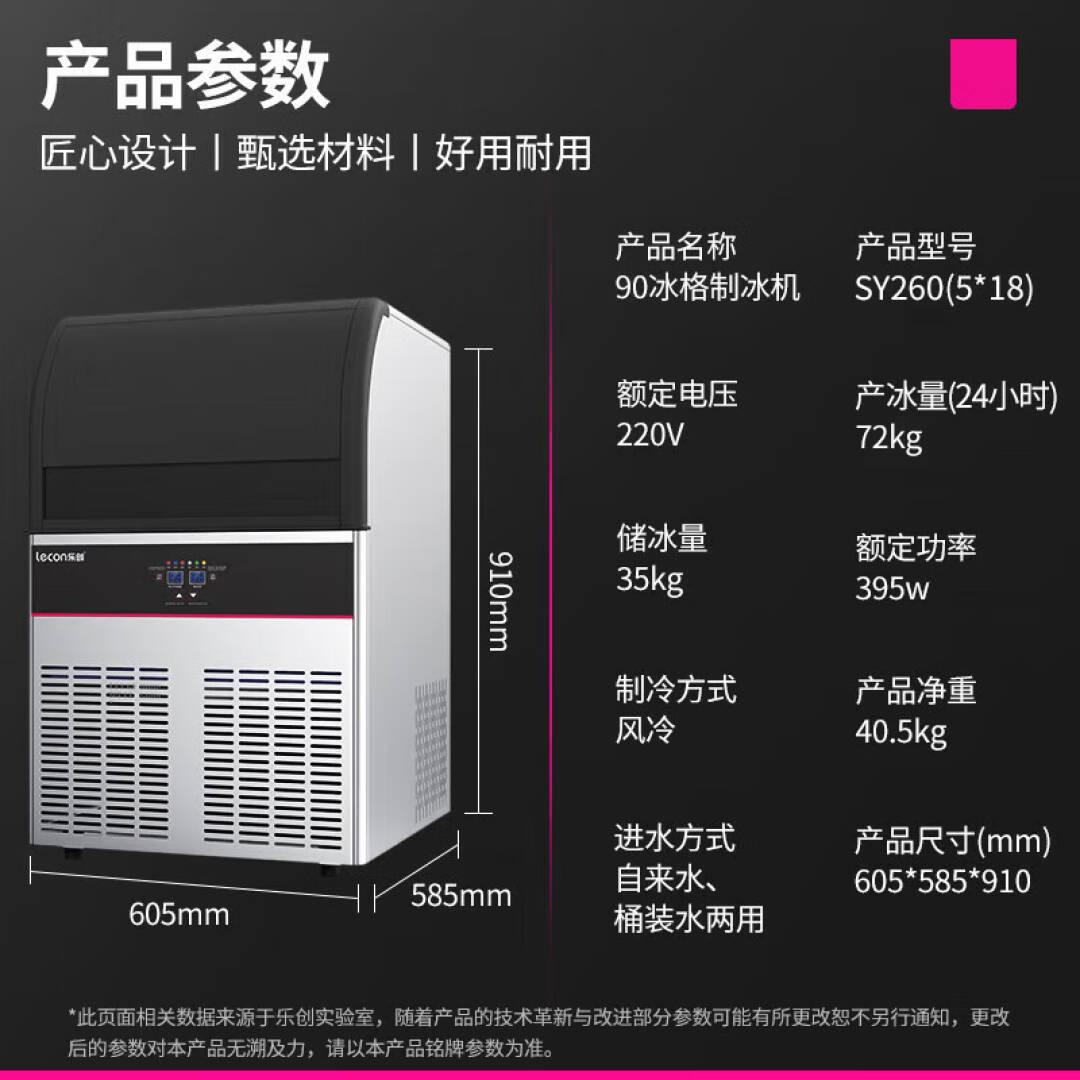 乐创(lecon)制冰机商用奶茶店全自动冰块机器酒吧台KTV方块冰 90冰格/日产72KG 自来/桶装两用 SY260(5*18)