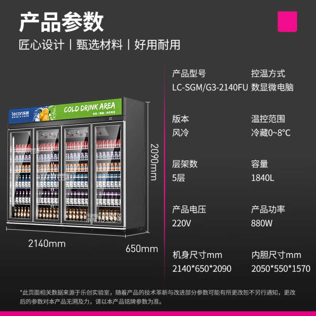 乐创(lecon)商用超市展示柜冷藏 便利店连锁专用饮料柜水果蔬菜啤酒柜四门LC-SGM/G3-2140FU