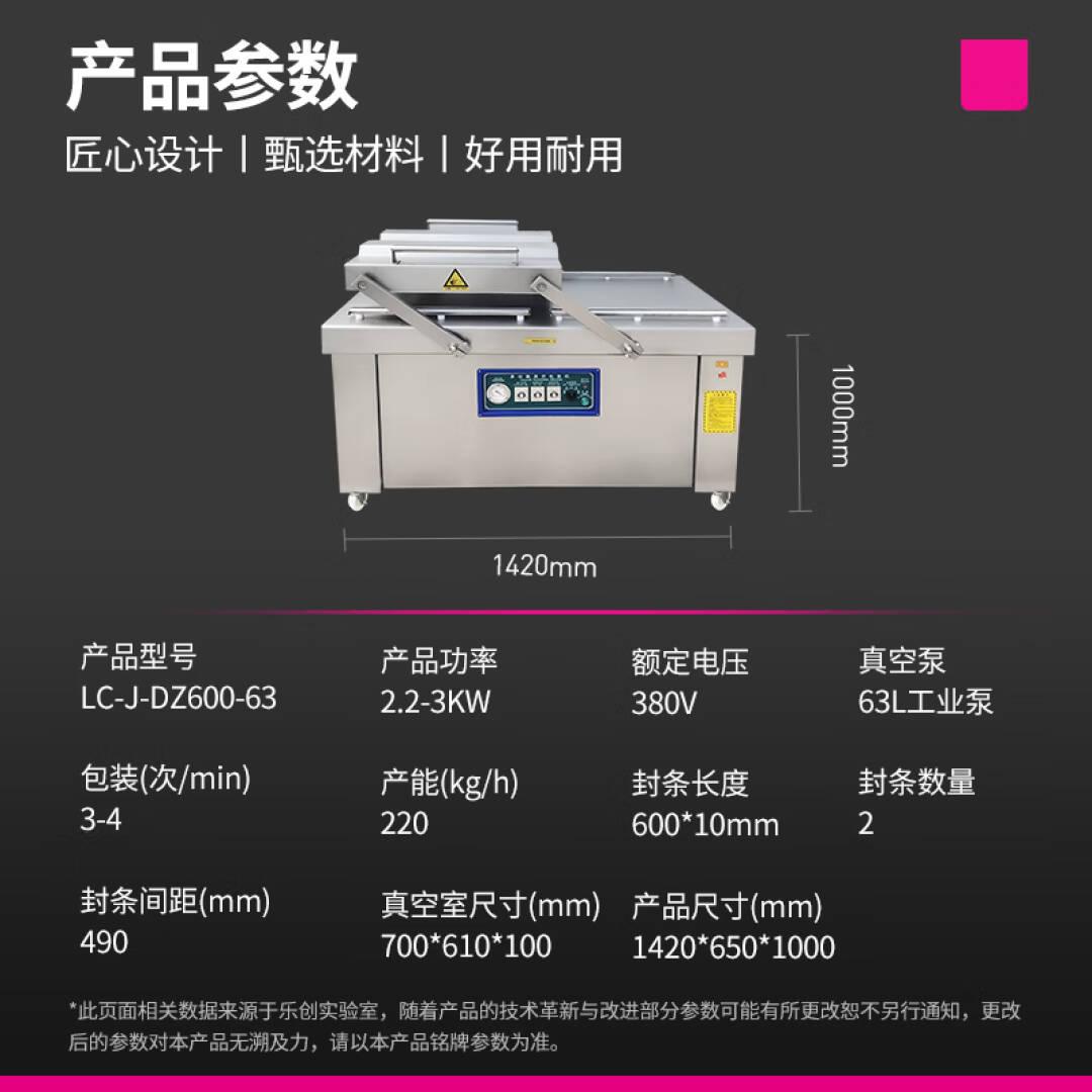 乐创(lecon) 双室真空包装机商用 全自动包装机保鲜干货茶叶预制菜真空封口 干湿两用 LC-J-DZ600-63