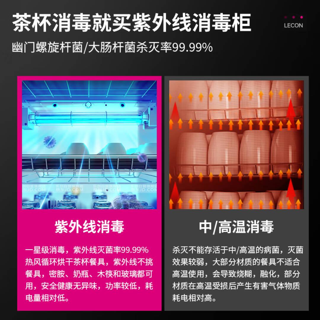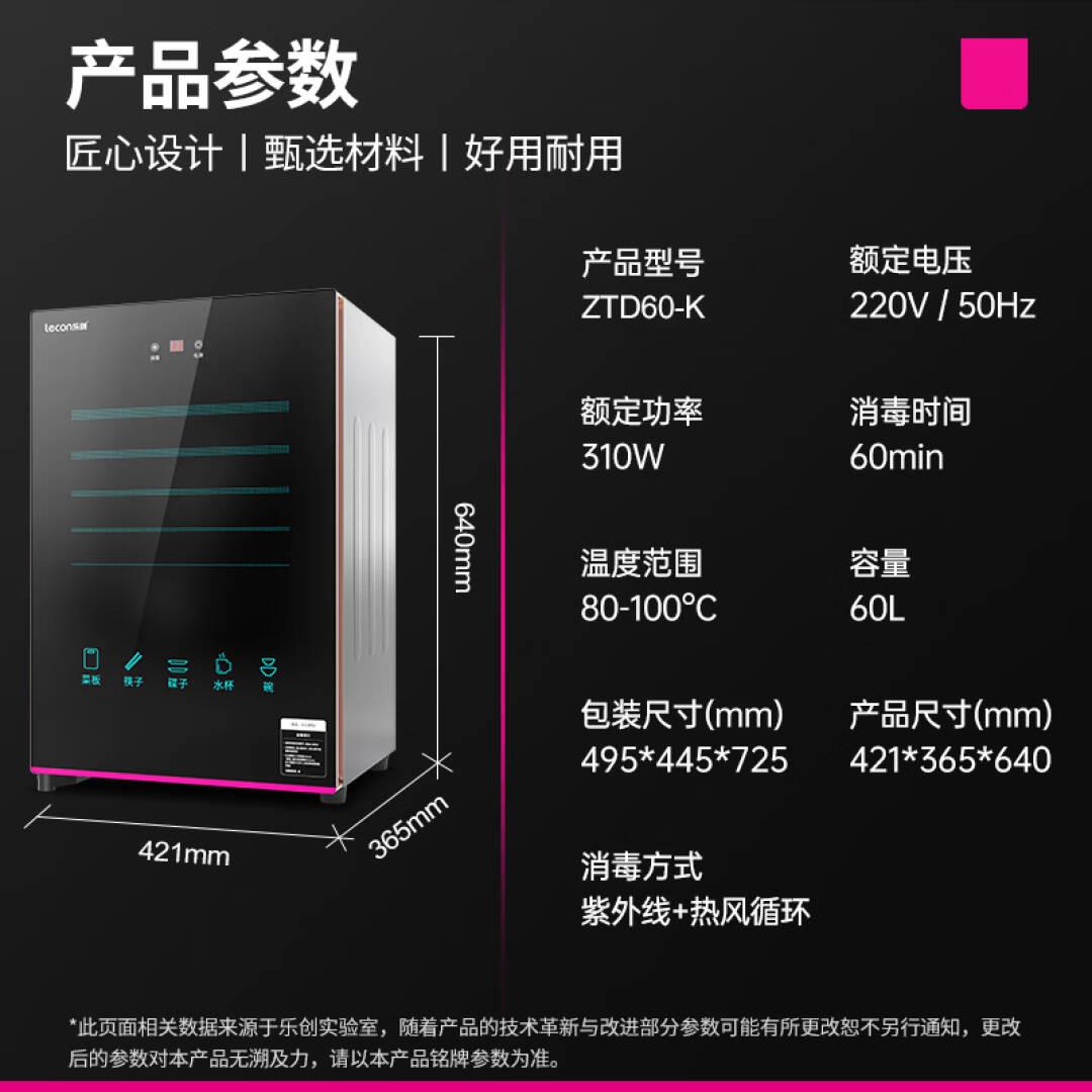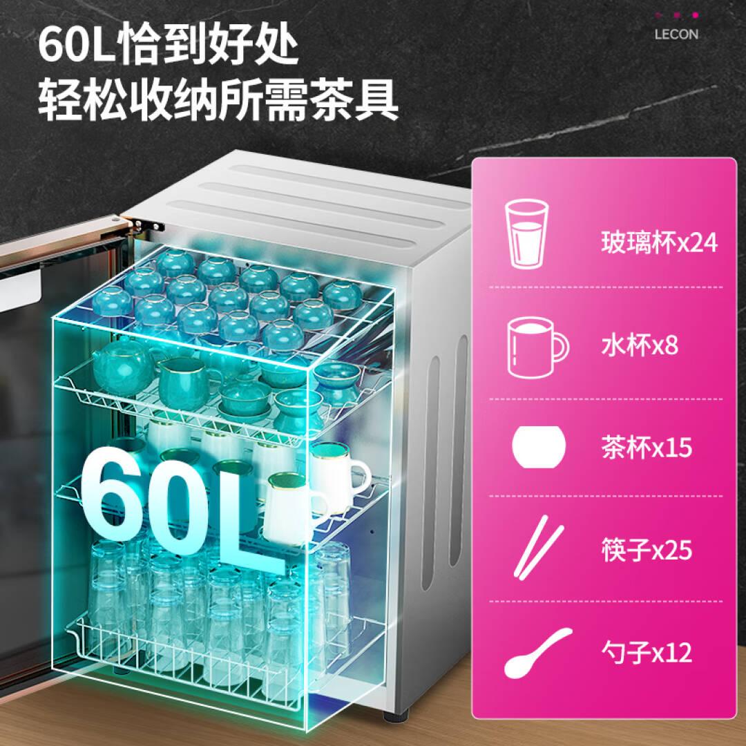 乐创(lecon)茶杯消毒柜小型茶具消毒柜办公室用消毒茶杯柜高温柜紫外线热风烘干 ZTD60-K 约放33个茶杯60L