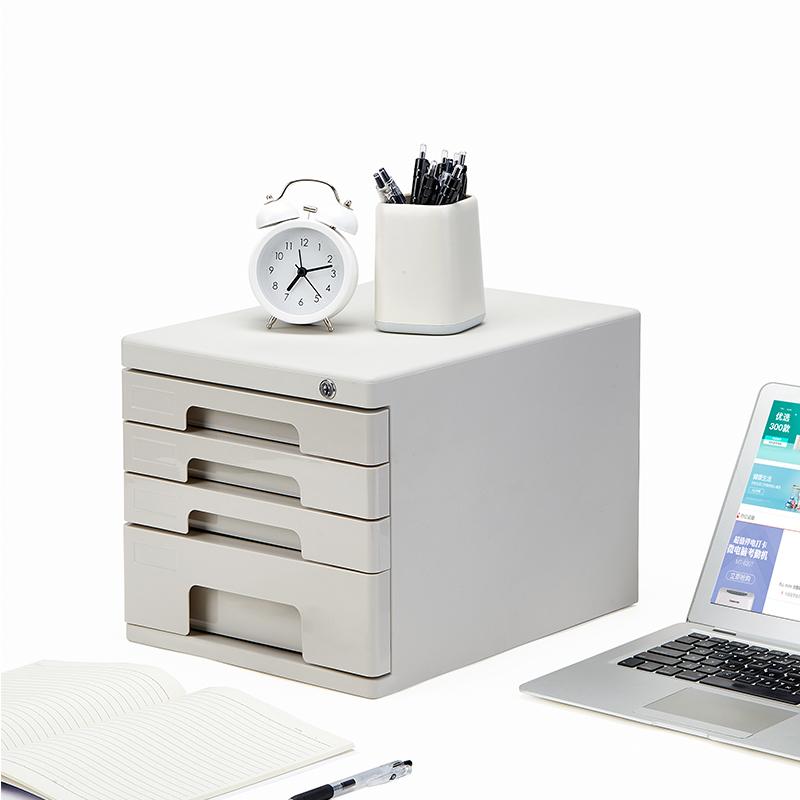 > 齐心 B2251 塑胶文件柜(四层带锁) 360*270*257mm 灰 单位:个