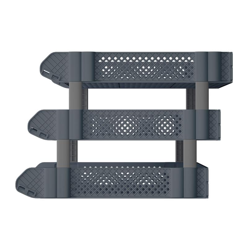 > 齐心 B2069 折叠文件盘 三层 深灰 单位:个