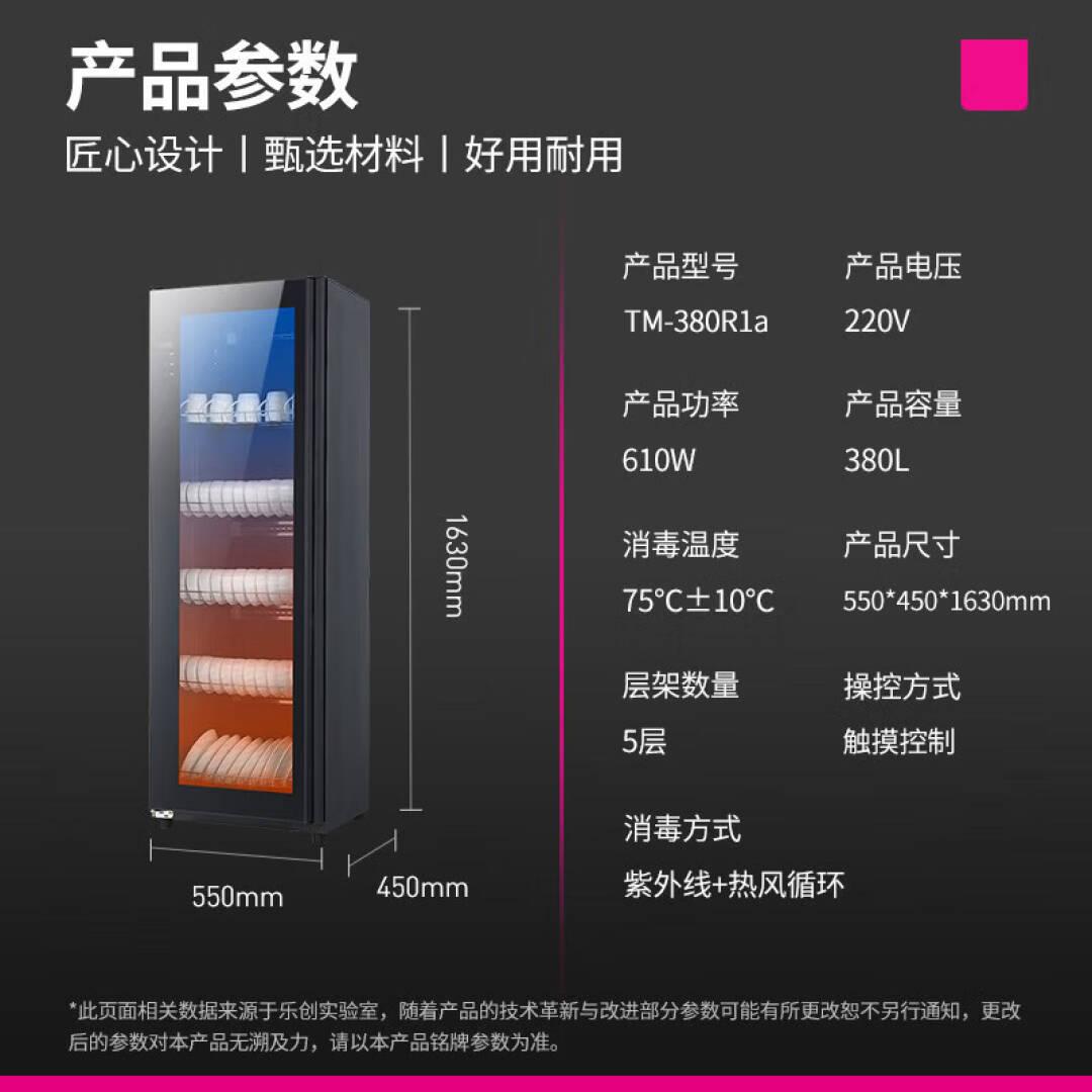 乐创(lecon)消毒柜商用消毒碗柜立式碗筷消毒柜单门密胺紫外线消毒柜茶杯触屏款TM-380R1a