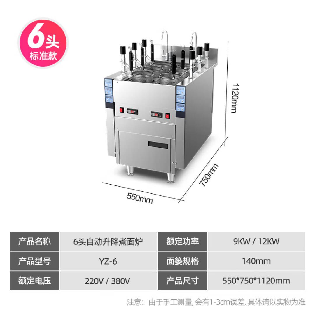 乐创lecon 煮面炉商用全自动升降式汤粉炉电热煮面桶九宫格6头可调功率款LC-JZML-6-B