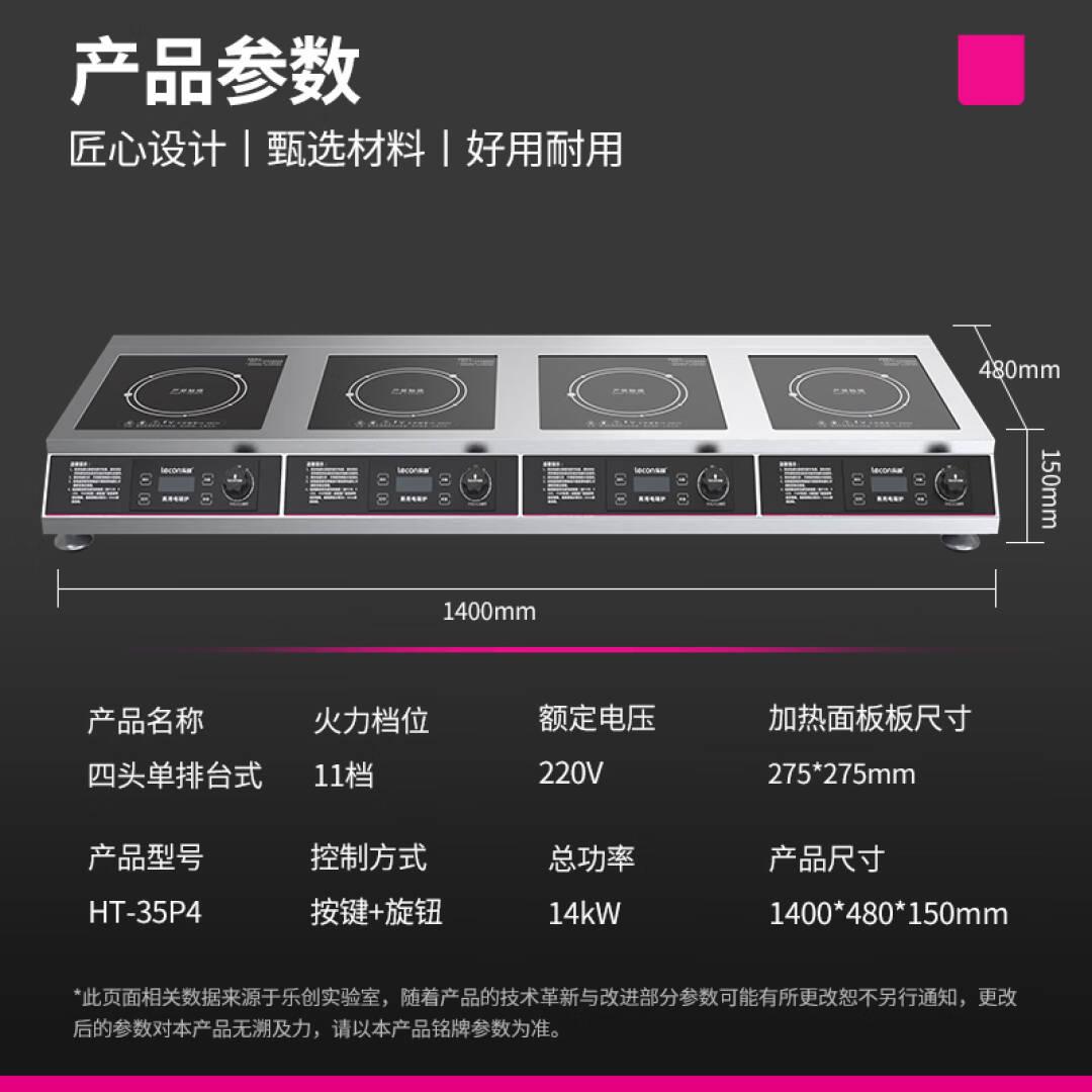 乐创lecon 电磁炉商用大功率3500W电磁灶多头灶四头电灶平面款LC-HT-35P4