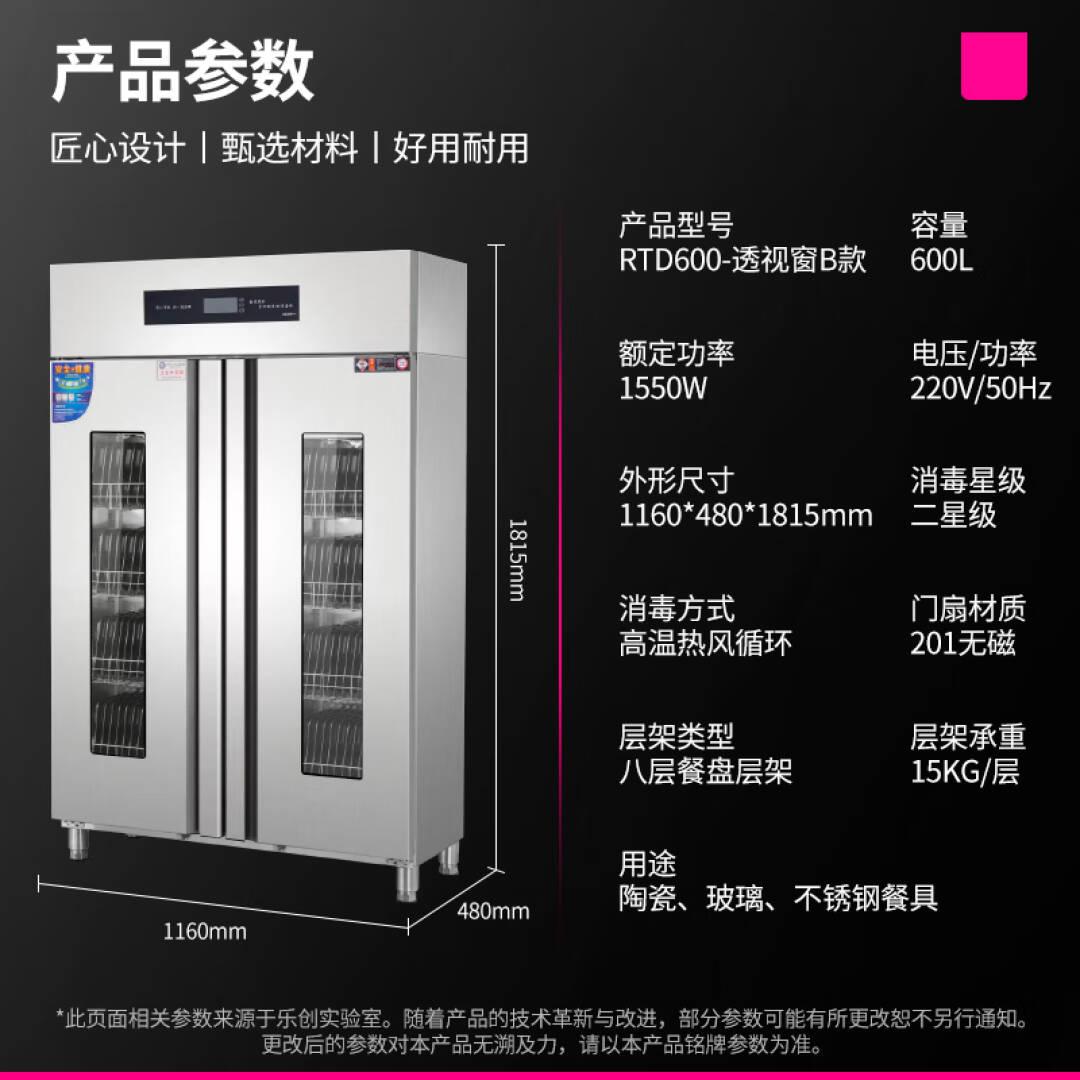 乐创(lecon)消毒柜立式高温消毒碗柜双开门透视窗大容量餐饮饭店学校酒店商用消毒柜 RTD600-透视窗B款