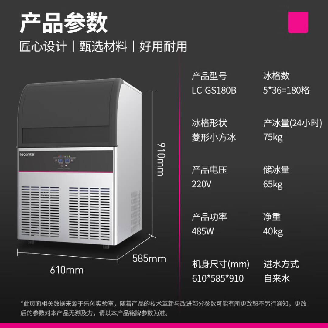 乐创(lecon)制冰机商用 奶茶店全自动冰块机器酒吧台KTV菱形小方冰 LC-GS180B