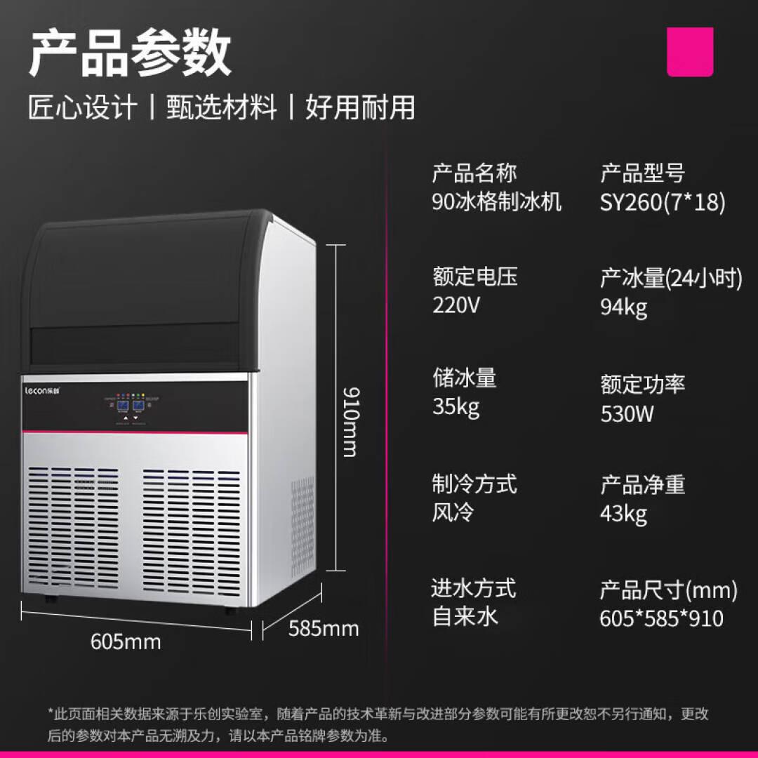 乐创(lecon)制冰机商用奶茶店全自动冰块机器酒吧台KTV方块冰 126冰格/日产94KG 自来水 SY260(7*18)