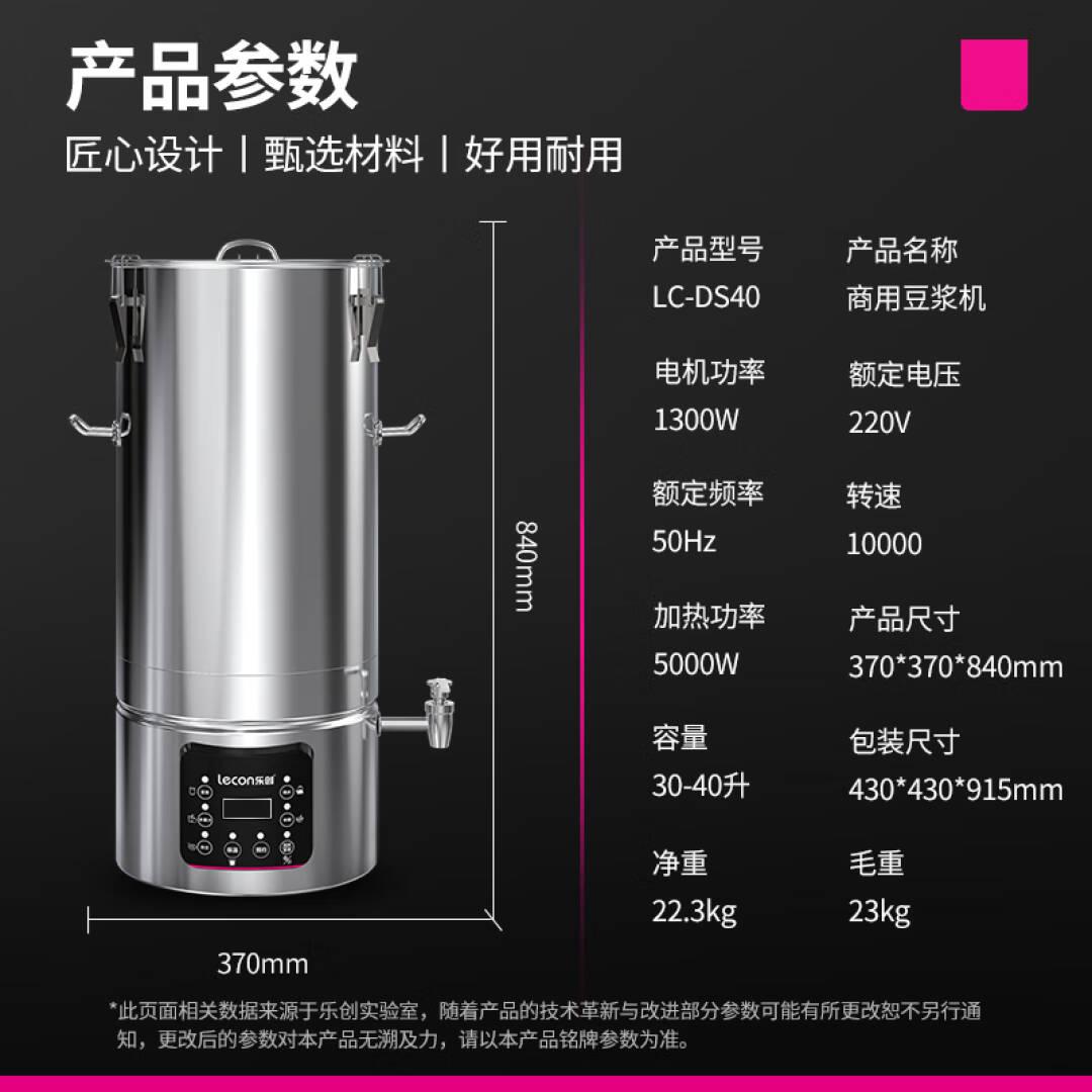乐创(lecon)豆浆机商用大容量全自动加热现磨免过滤智能预约磨浆机304不锈钢 自带保温系统 LC-DS40
