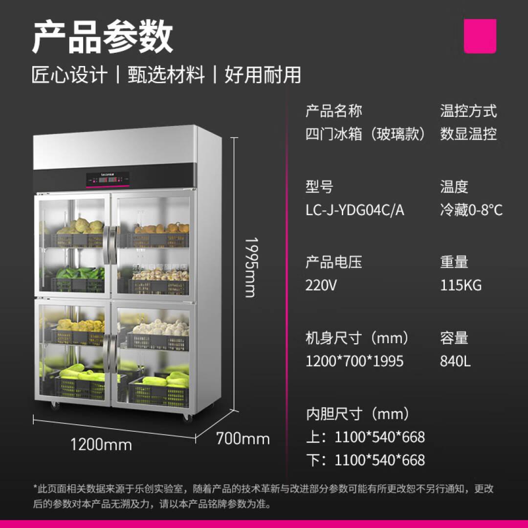 乐创(lecon)展示柜冷藏保鲜柜 超市饭店水果蔬菜大容量冰柜四门玻璃门乐创LC-J-YDG04C/A