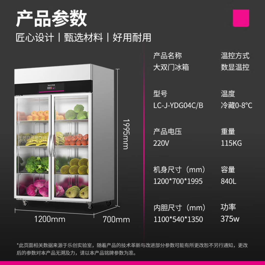 乐创(lecon)展示柜冷藏保鲜柜 超市饭店水果蔬菜大容量冰柜大双门LC-J-YDG04C/B