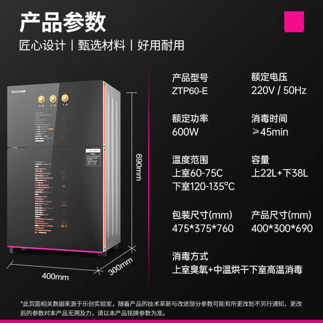 乐创(lecon)消毒柜消毒碗柜 消毒柜家用碗筷消毒柜碗柜厨房柜 立式上下门茶杯茶具消毒柜 ZTP60-E