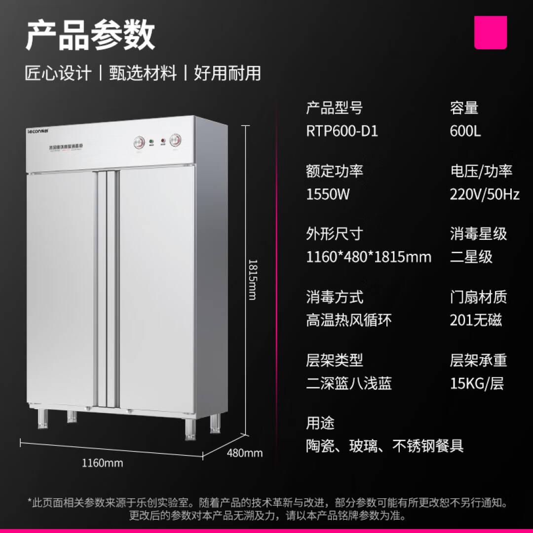 乐创(lecon)消毒柜立式热风循环双门消毒柜单位厨房餐厅食堂消毒柜8层商用大容量 RTP600-D1