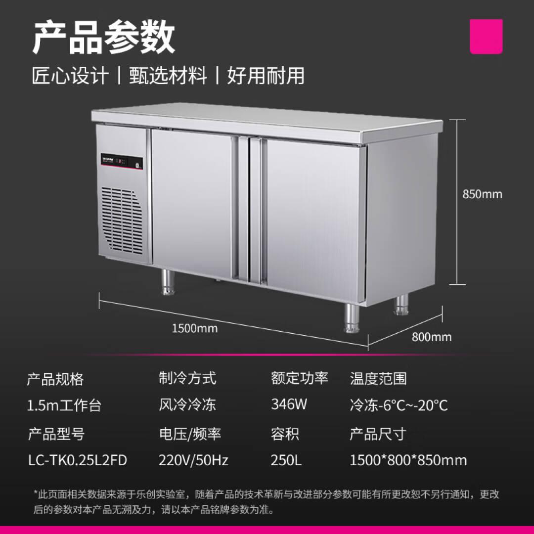 乐创(lecon)商用冷冻工作台保鲜奶茶店设备卧式冰柜厨房平冷操作台1.5*0.8米冷冻风冷冰柜LC-C-TK0.25L2F