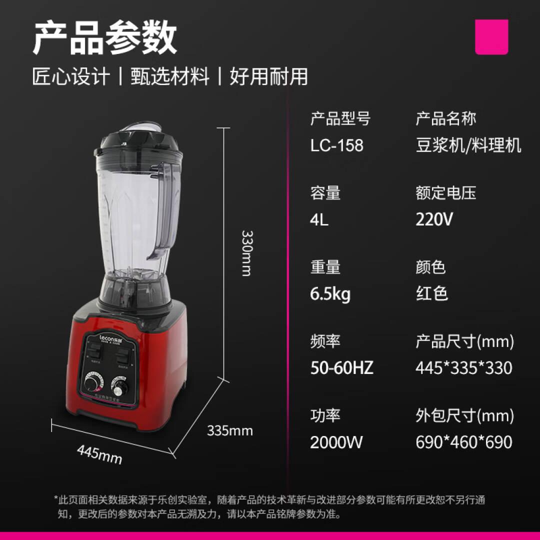 乐创(lecon)商用豆浆机大容量早餐店现磨多功能免滤大功率料理机破壁机 LC-158