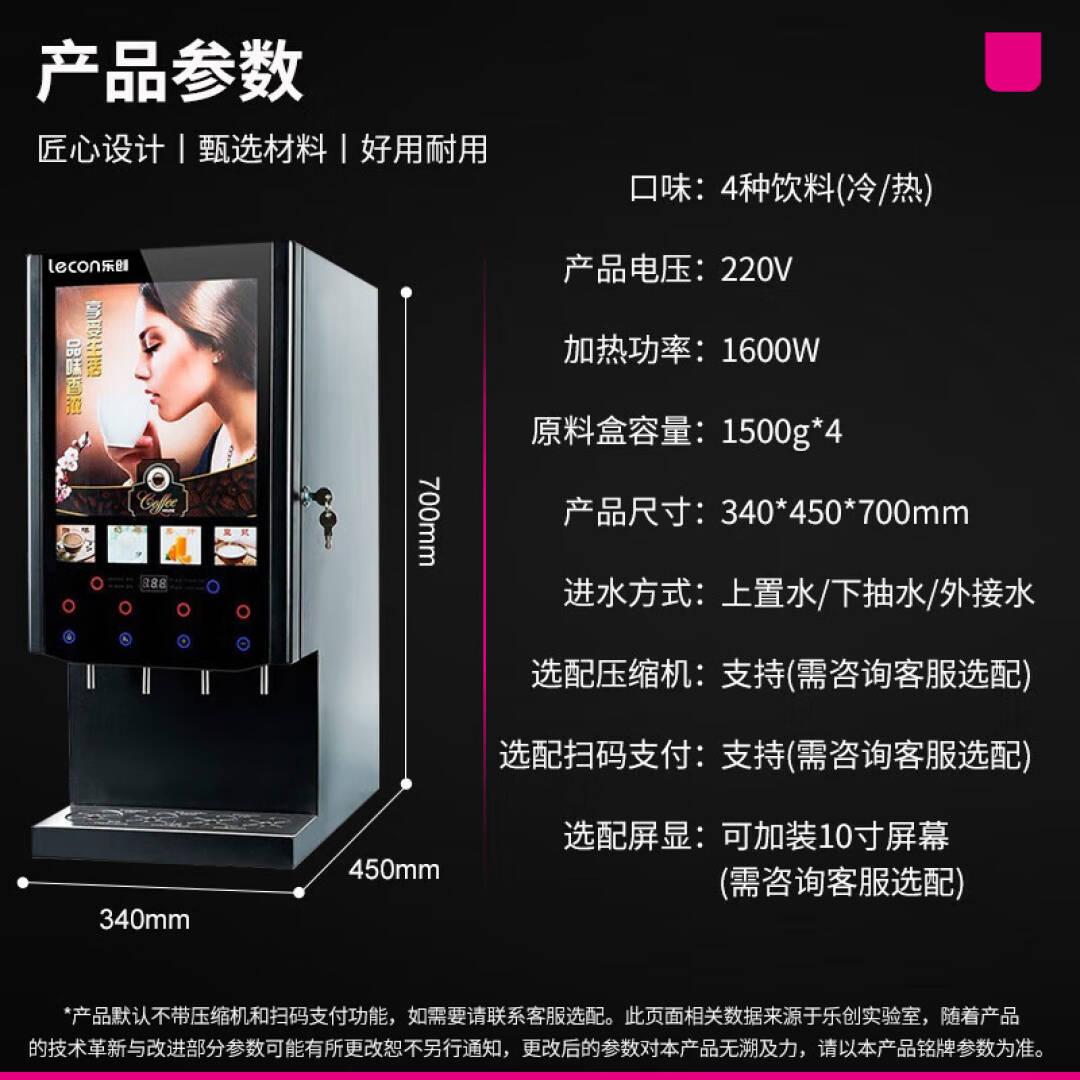 乐创(lecon)速溶咖啡机商用全自动多功能自助饮料机器奶茶果汁咖啡豆浆一体机 4冷4热+冷热水 40SCW-10