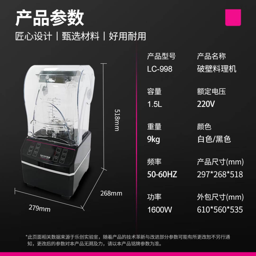 乐创(lecon)商用豆浆机大容量早餐店现磨多功能免滤大功率料理机破壁机 LC-998