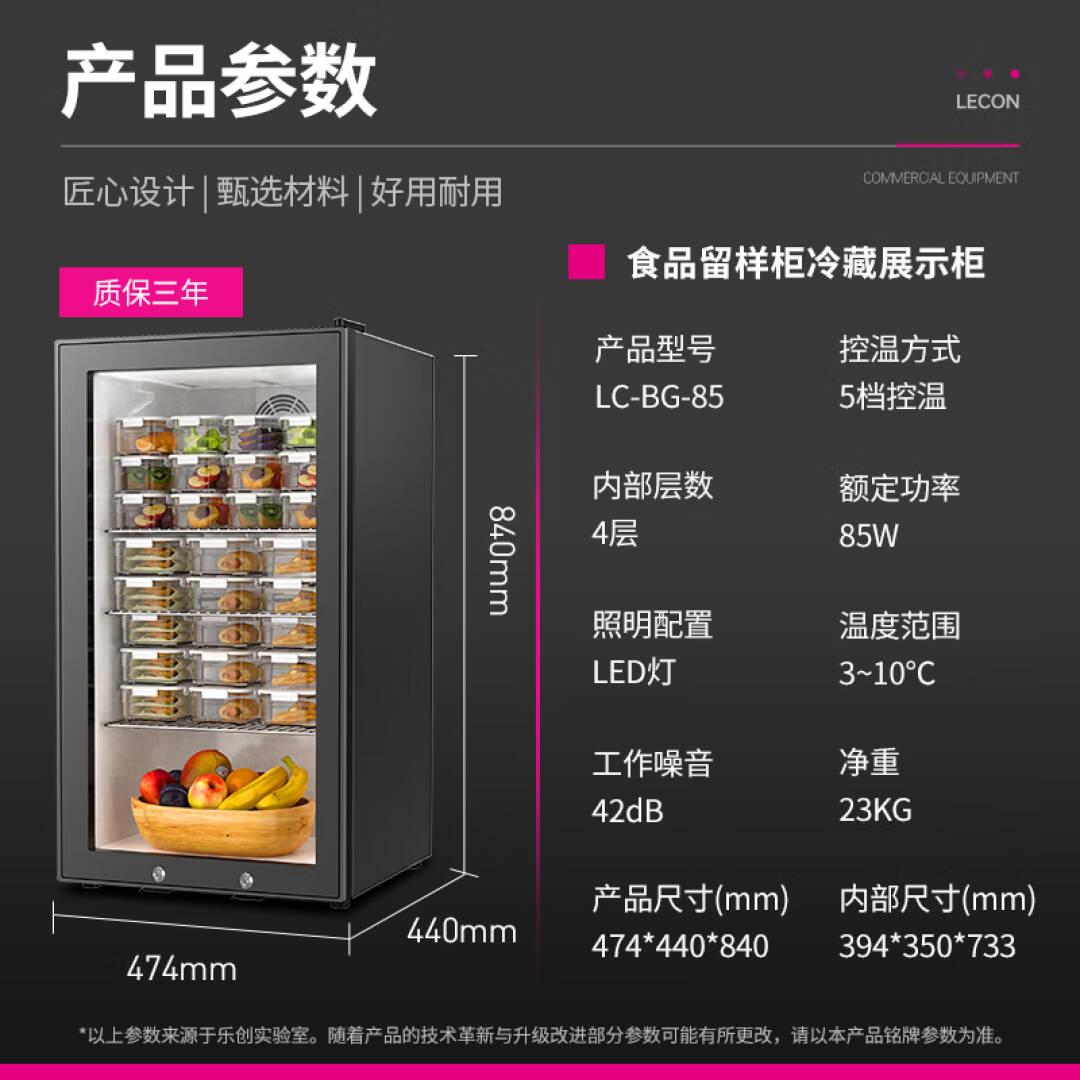 乐创(lecon)食品留样柜食堂用 幼儿园学校酒店菜品留样冰箱水果蔬菜保鲜冷藏展示柜带双锁LC-BG-85