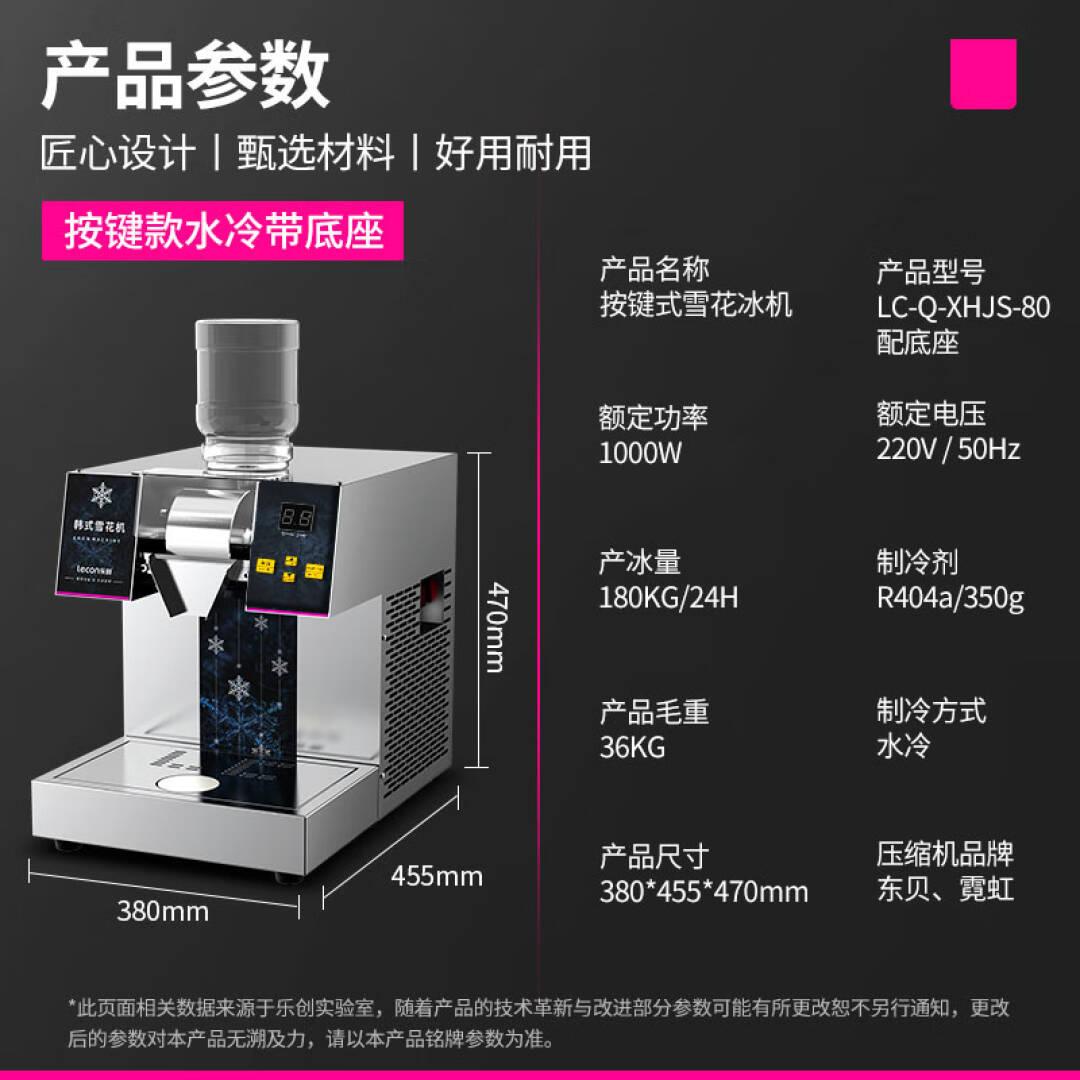乐创(lecon)雪花机商用碎冰机绵绵冰机雪花冰机摆摊用日产量180kg水冷LC-Q-XHJS-80配底座