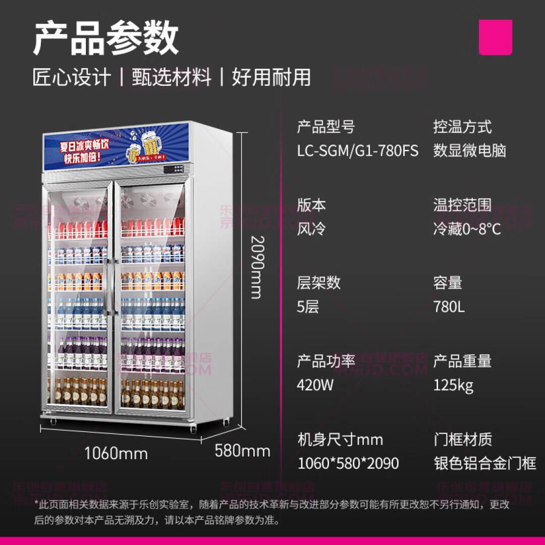 乐创(lecon)商用超市展示柜冷藏保鲜柜风冷无霜冰柜冷藏展示柜便利店啤酒柜双门LC-SGM/G1-780FS