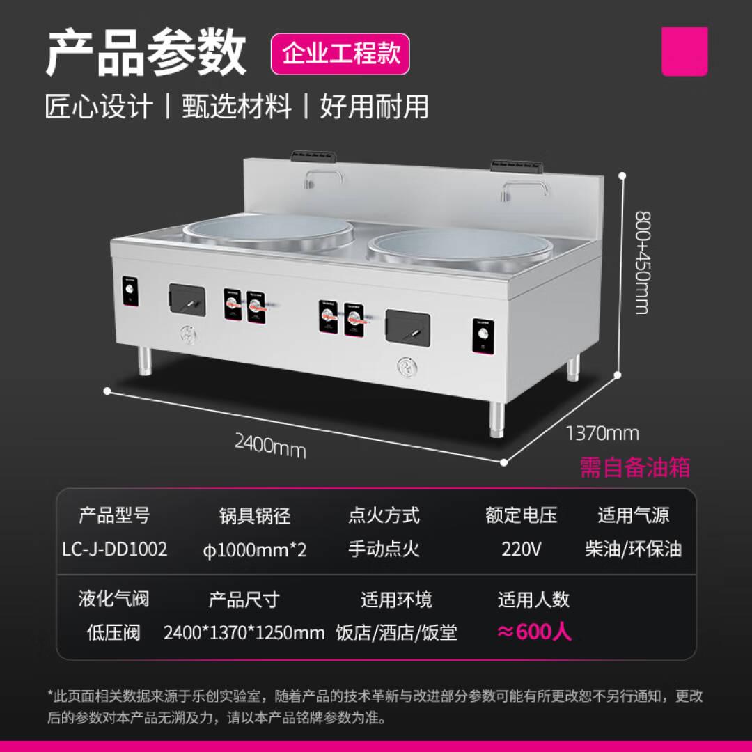 乐创(lecon)商用燃气双头大锅灶 锅径1000 柴油/环保油可选厨房企业炒灶 LC-J-DD1002