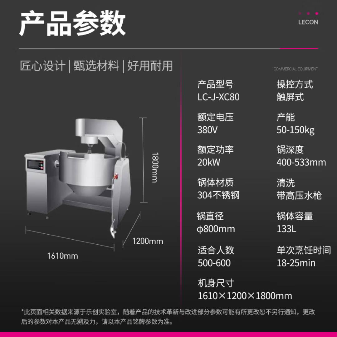 乐创(lecon)全自动炒菜机商用大型厨房智能炒菜设备电动触屏自动搅拌电磁炒菜机Φ800mm LC-J-XC80