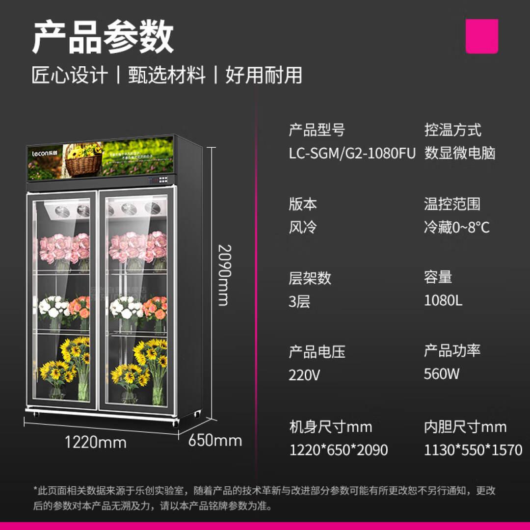 乐创(lecon)展示柜商用鲜花保鲜柜 风冷无霜冷藏柜花店市场鲜花植物陈列柜双门 LC-SVC/G2-1080FU