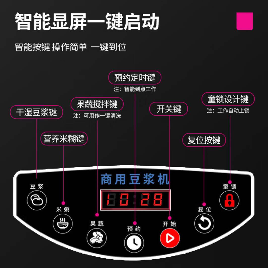 乐创(lecon)商用豆浆机大容量全自动加热触控现磨免过滤预约磨浆机304不锈钢 浆渣分离 LC-DJ117