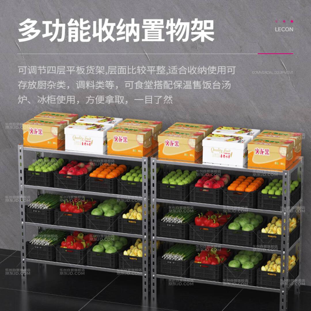 乐创(lecon)商用货架四层304不锈钢可调节工程款冲孔储物货架厨房置物架1.8*0.5*1.55米LC-P-FPR-185S
