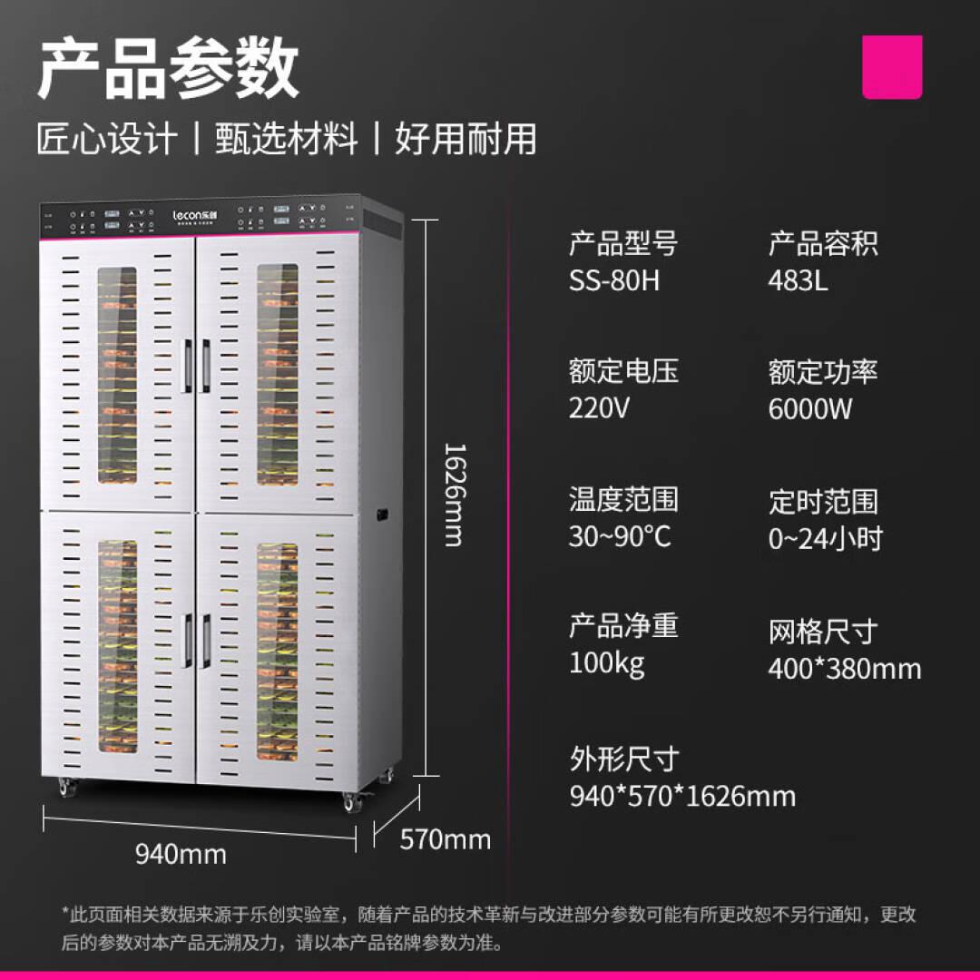 乐创(lecon)烘干机食品干果机商用食品药材水果烘干机不锈钢蔬菜风干机80层干果机 SS-80H