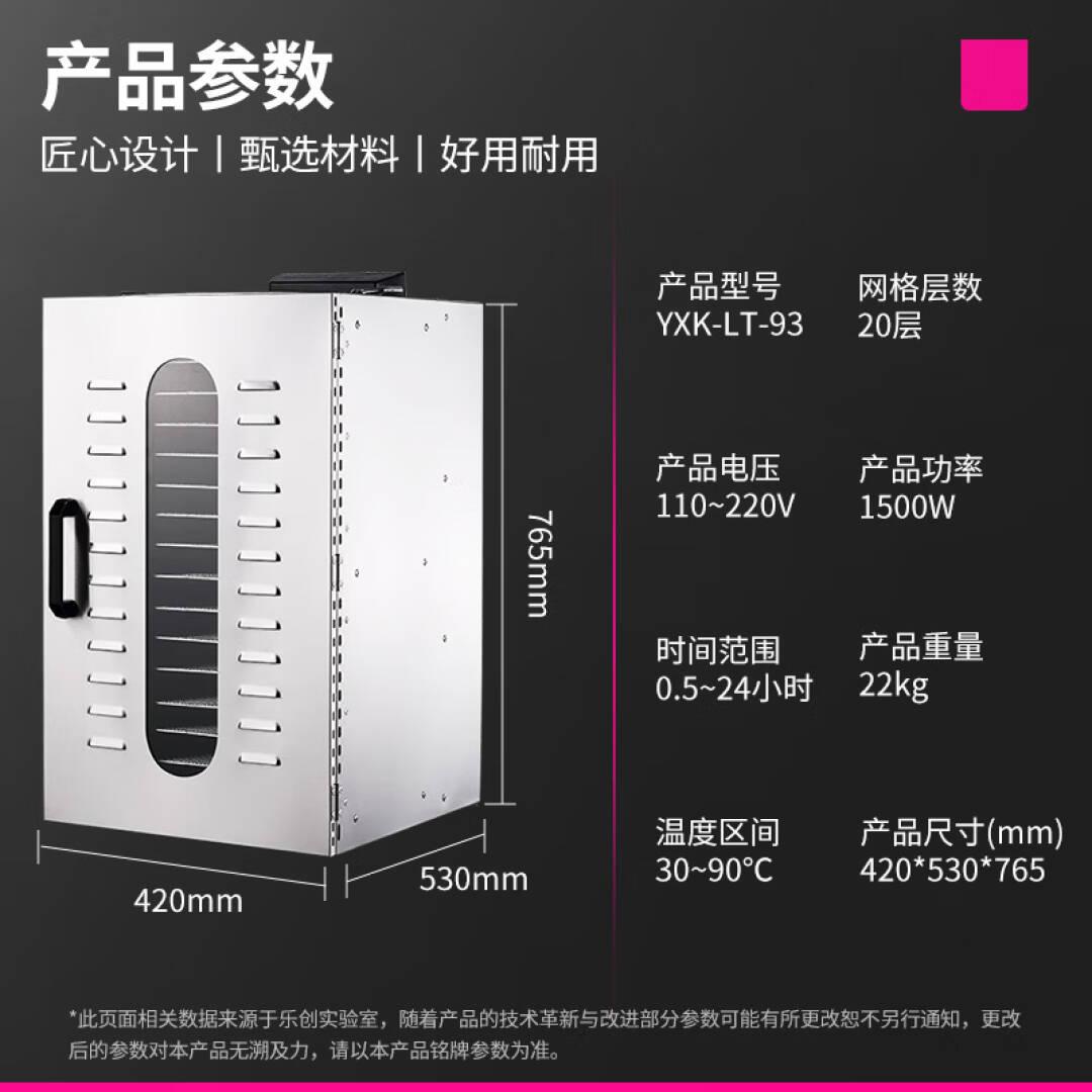 乐创(lecon)烘干机食品干果机商用食品药材水果烘干机不锈钢蔬菜风干机20层干果机 YXK-LT-93带灯款