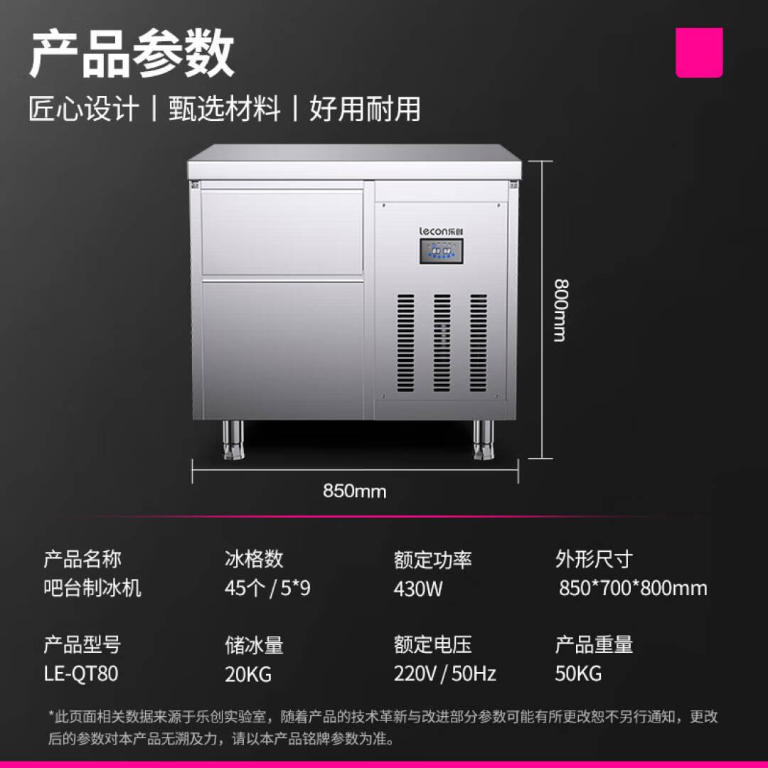 乐创(lecon)吧台式商用制冰机大容量商用不锈钢操作台奶茶店设备水吧台制冰机商用 全自动制冰机 LE-QT80