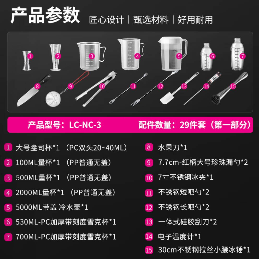 乐创(lecon)奶茶店配件-入门基础版套餐 打蛋器/计时器/电子秤/开罐器/压汁器/砧板/吸管座/油盘/汤桶 LC-NC-3