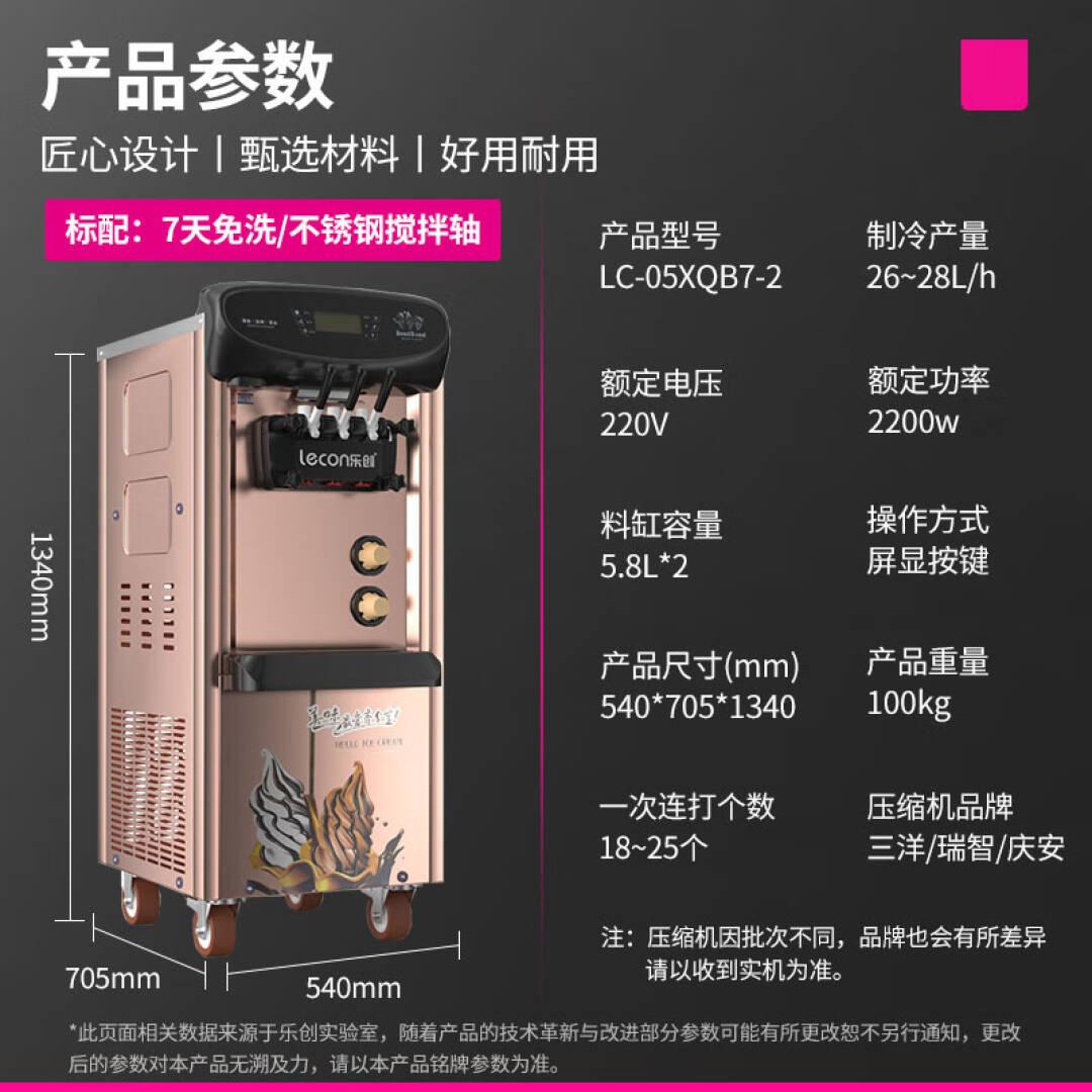 乐创(lecon)冰淇淋机商用双压缩机预冷保鲜7天免清洗软冰激凌雪糕甜筒立式圣代机金色 LC-05XQB7-2