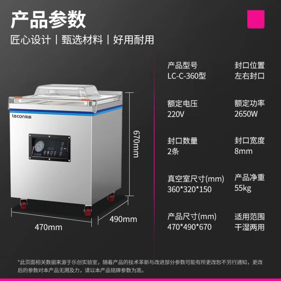 乐创(lecon)抽真空封口机商用全自动大型食品包装机保鲜干湿两用 预制菜封口机 360型工业大泵 LC-C-360型