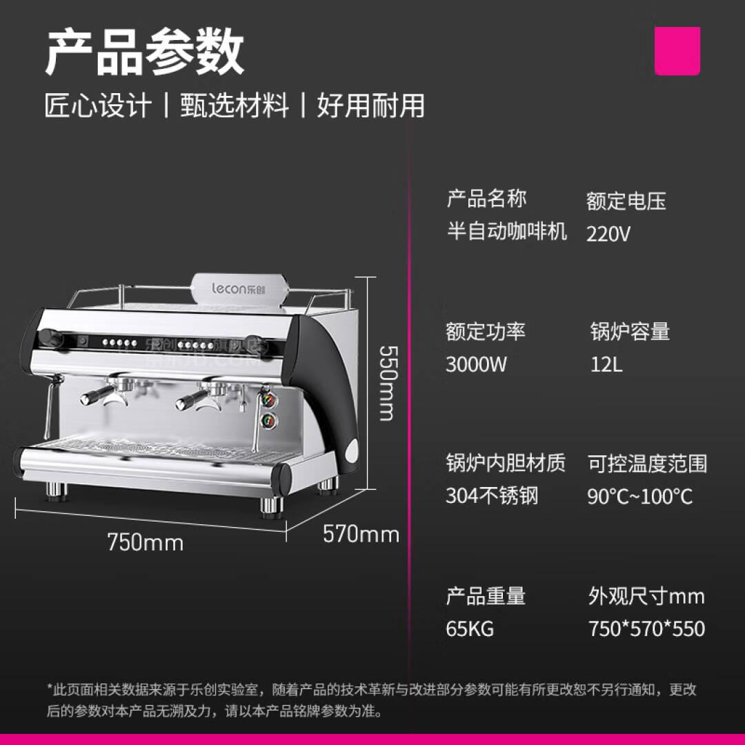 乐创(lecon)咖啡机商用意式半自动咖啡机专业现磨泵压萃取蒸汽打奶泡双头MY-2
