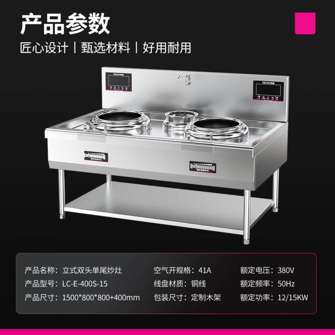 乐创(lecon)商用电炒炉电磁灶大锅灶大功率电灶猛火灶单位食堂多功能炒灶立式凹面双头单尾LC-E-400S-15 单位:台