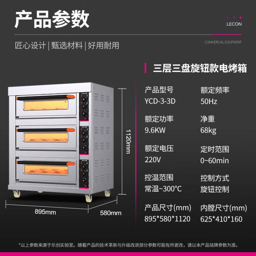 乐创(lecon)商用烤箱大型专业电烤箱大容量面包蛋挞烤炉烘培西点电热烤箱 【旋钮定时款】三层三盘220V/380V