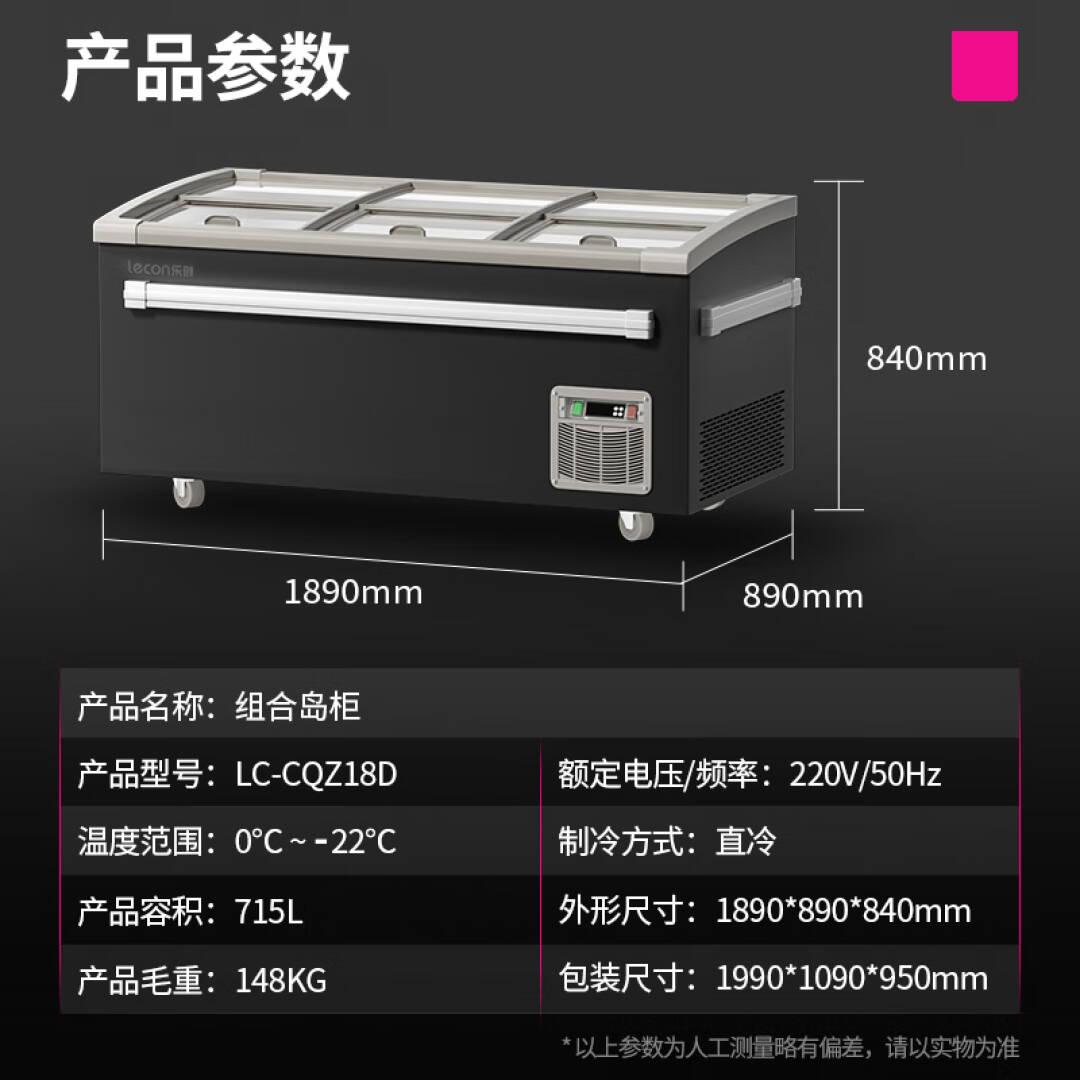 乐创(lecon)冰柜展示柜岛柜冷冻柜上下推拉自动化霜715L LC-CQZ18D
