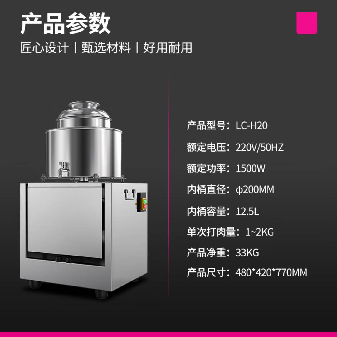 乐创(lecon)绞肉机商用肉丸机全自动大型碎肉搅拌打浆机多功能大功率打猪牛肉酱鱼肉丸子机 12.5L LC-H20