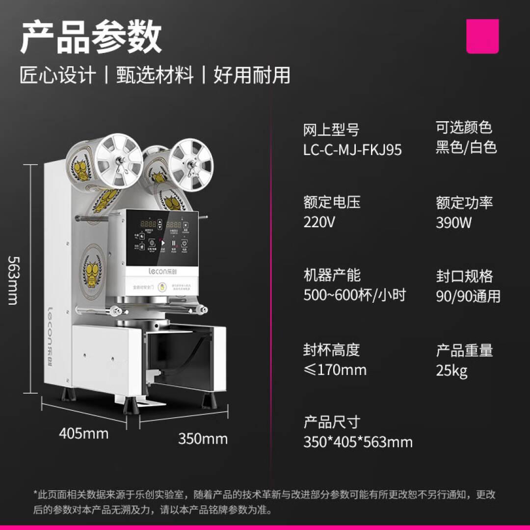 乐创(lecon)奶茶封口机全自动商用封口机奶茶店豆浆饮料封口机纸杯塑料杯 90/95通用-白色 LC-C-MJ-FKJ95