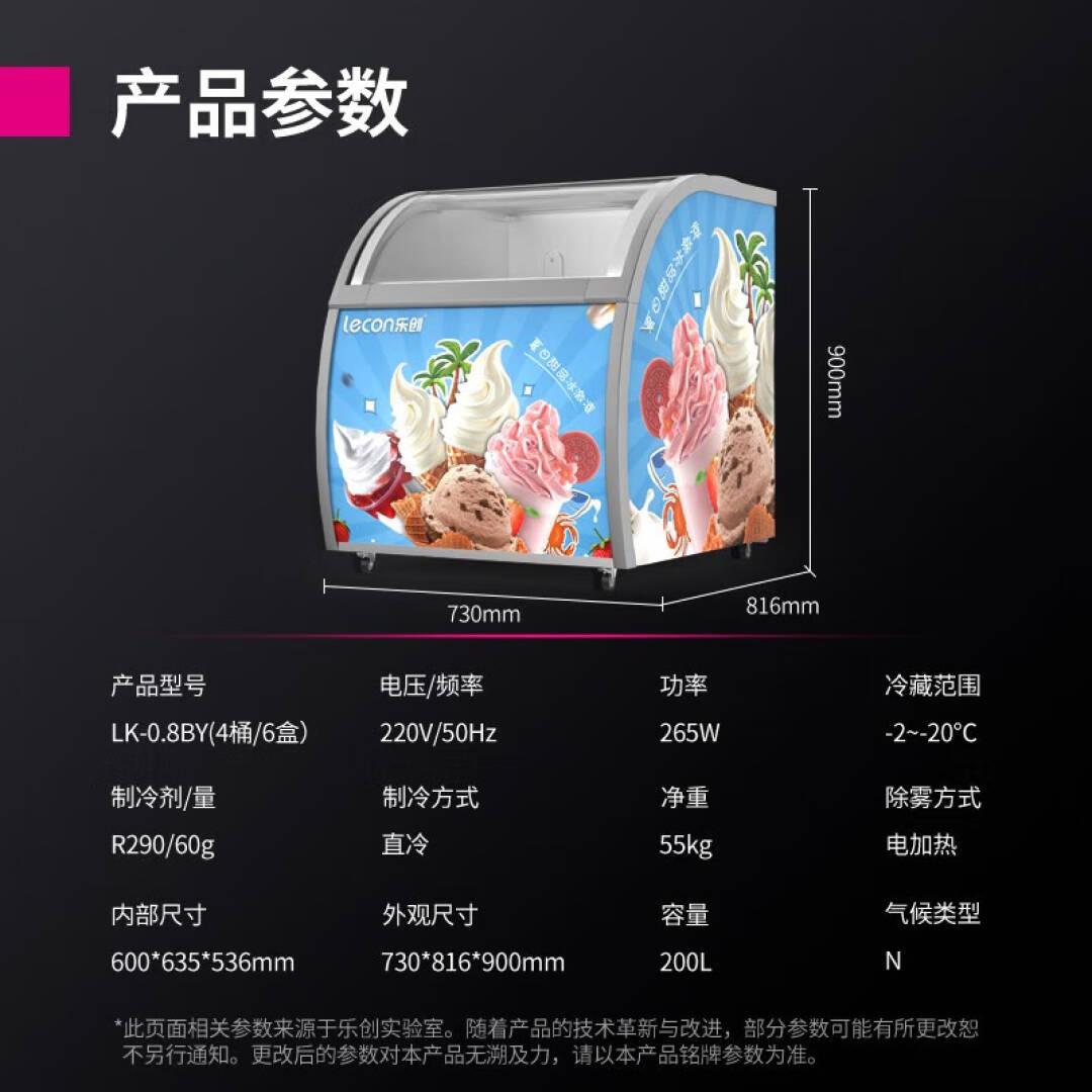 乐创(lecon)雪糕柜商用冰淇淋展示柜摆摊冷冻展示柜冷藏保鲜柜 方盒立式除雾玻璃6盒 LK-0.8BY-6H