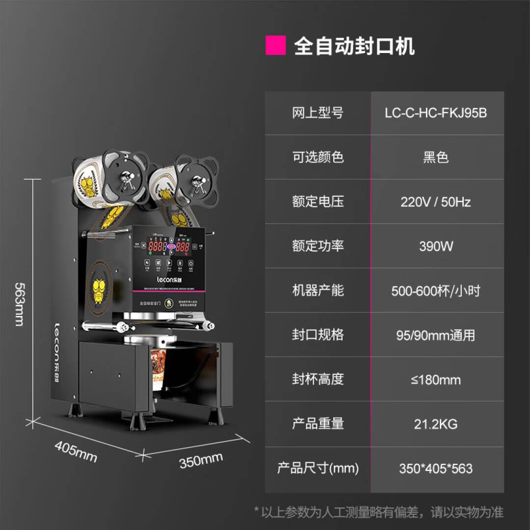 乐创(lecon)奶茶封口机商用全自动奶茶店专用奶茶杯90/95通用口径【冷热可封+智能主板】黑色 LC-C-HC-FKJ95B
