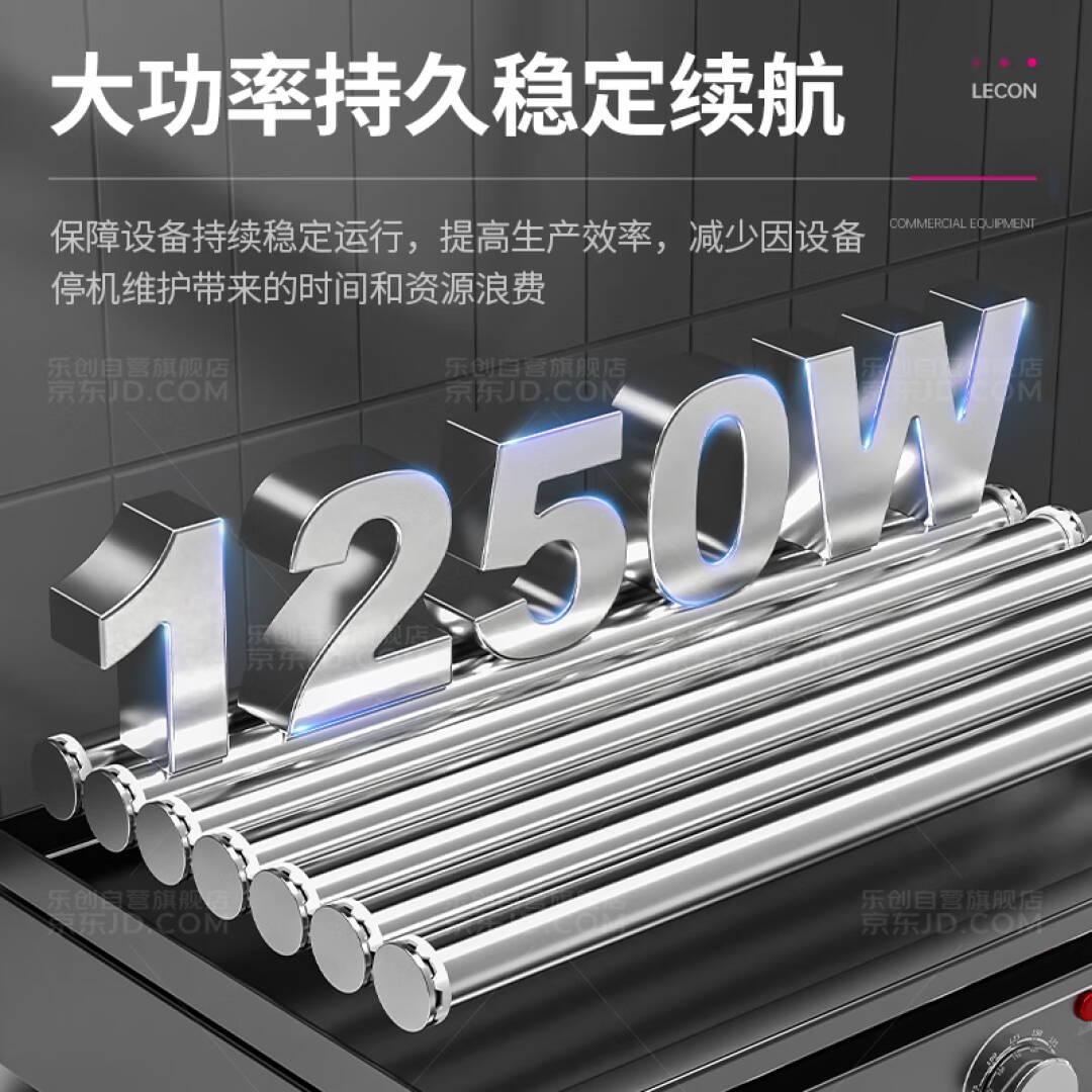 乐创(lecon)烤肠机商用香肠热狗机 7管304钢化玻璃大功率台式烤肠机 带可拆卸食物架 LC-KC007