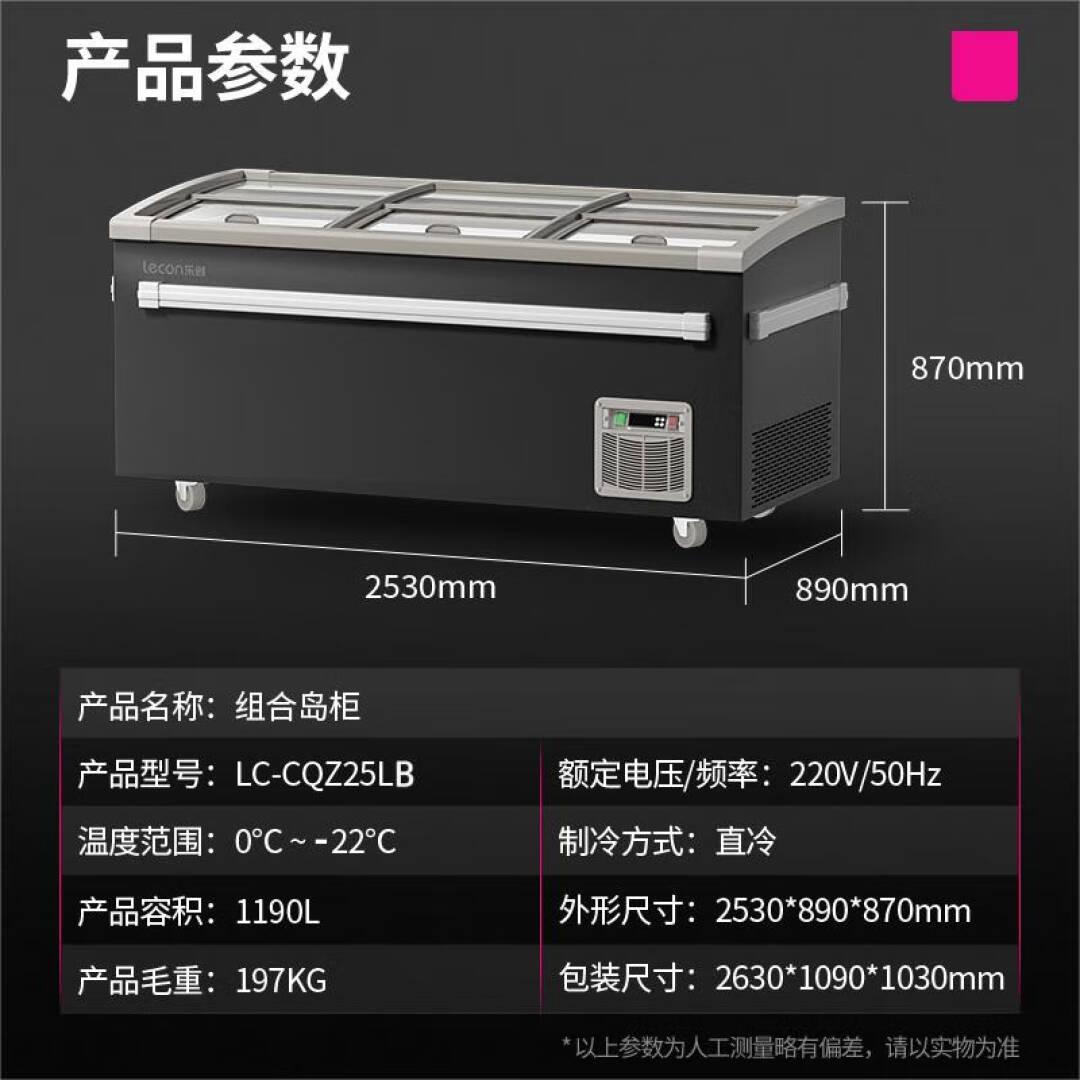 乐创(lecon)冰柜展示柜岛柜冷冻柜上下推拉不化霜1190L LC-CQZ25LB