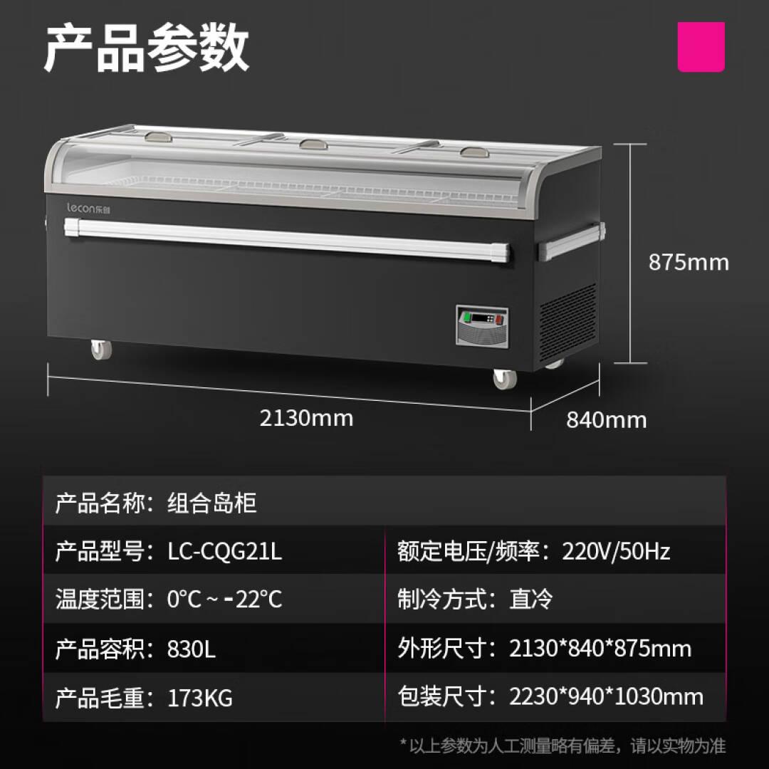 乐创(lecon)冰柜展示柜岛柜冷冻柜前透视组合岛柜自动化霜830L LC-CQG21L