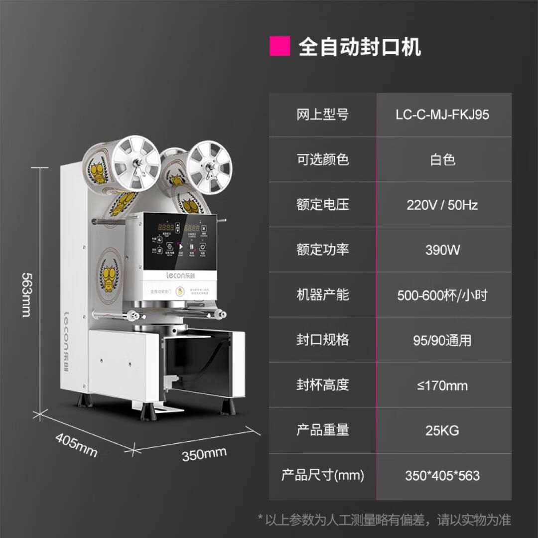 乐创(lecon) 奶茶封口机商用全自动奶茶店专用奶茶杯90/95通用口径【冷热可封+智能主板】白色 LC-C-MJ-FKJ95